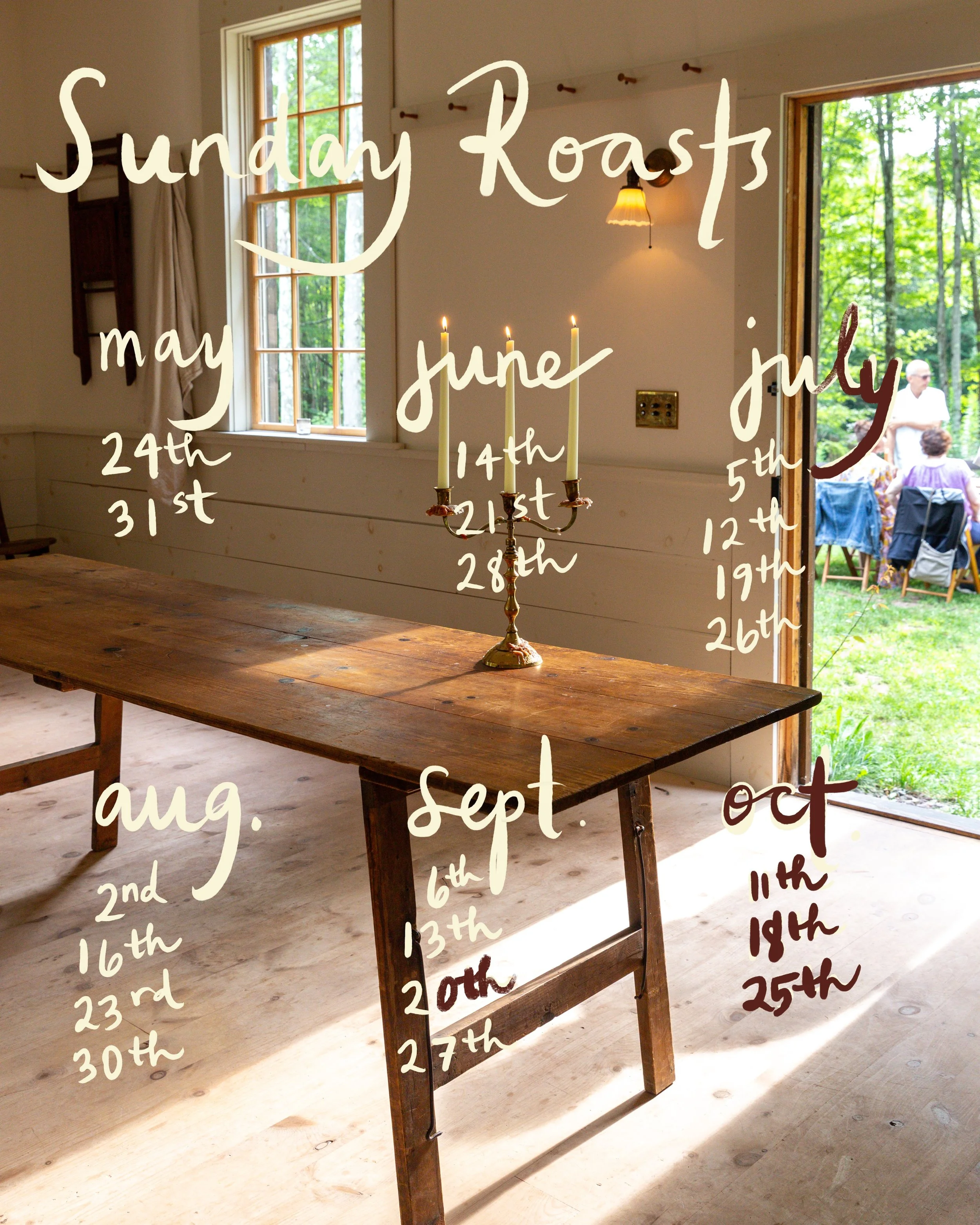 WHAT : Celebrate the season with a country-style midday meal. Pile your plate high with an assortment of housemade bakes, meats, pickles, sauces, and other accoutrements, to enjoy alongside that Sunday’s main dish. All will be prepared with ingredients from our gardens & larder and our neighboring farms, accompanied by our housemade beer and wine.